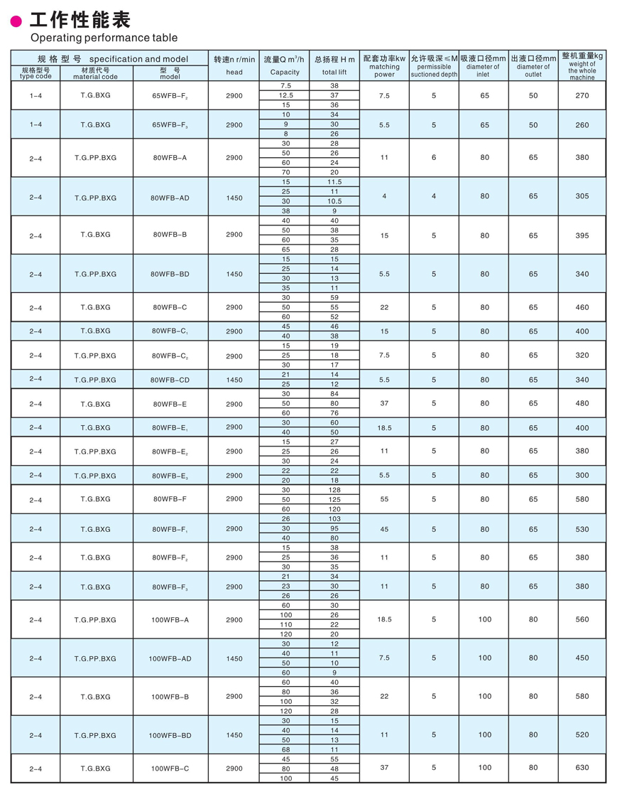 WFB系列无密封自控自吸泵采用“连环式”多面离心密封装置,无“跑、冒、滴、漏”之忧。由于运行过程中无密封装置磨擦,无磨损,因此,使用寿命较同类产品延长数倍。该泵具有耐温、耐压、耐磨“一次引流,终身自吸”等多种功能,自吸性能可靠,特别是采用“电动空气控制阀”具有运行可靠、拆卸方便,易于安装等特点。该泵分别采用不锈钢、增强聚炳烯、铸钢等多种材质制造,可分别适用于各种场合,同时根据用户需要,还设计了多种形式,长方型、圆锥形,可为您提供不同安装形式的选择余地。防爆型、户外型,可适用于易燃易爆、雨雾、潮湿场合。.推车移动型更可将水泵方便地送到您所需要的任何工作岗位上。
